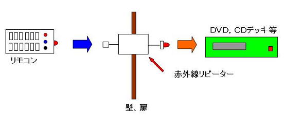 壁や扉は赤外線を通すことが出来ません。扉の向こうにあるCDやDVDデッキをリモコンで操作