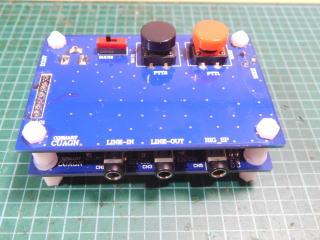 先の写真のように2枚の基板で構成されてます。図1のように、ヘッドフォン、トランシーバ、スマートフォンを次の図のように接続します。
